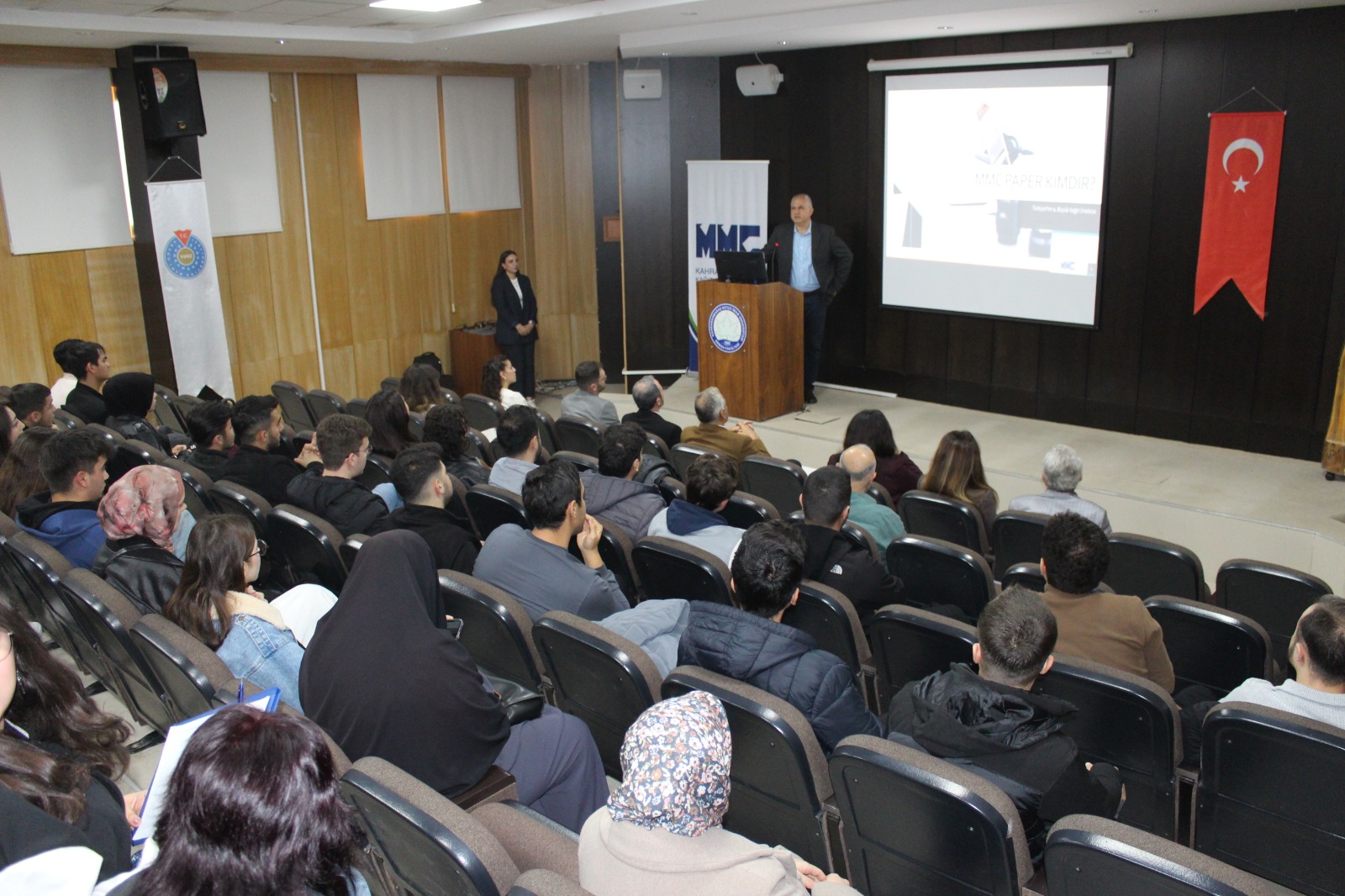 Programın konuk konuşmacısı, MMCPAPER–Kahramanmaraş Kağıt Sanayi ve Ticaret A.Ş. Genel Müdürü Recep Agci oldu. Agci, kâğıt sektöründe yaşanan güncel gelişmeleri, üretim süreçlerindeki yenilikleri ve sektörde genç mühendisleri bekleyen fırsatları kapsamlı bir sunumla öğrencilere aktardı.