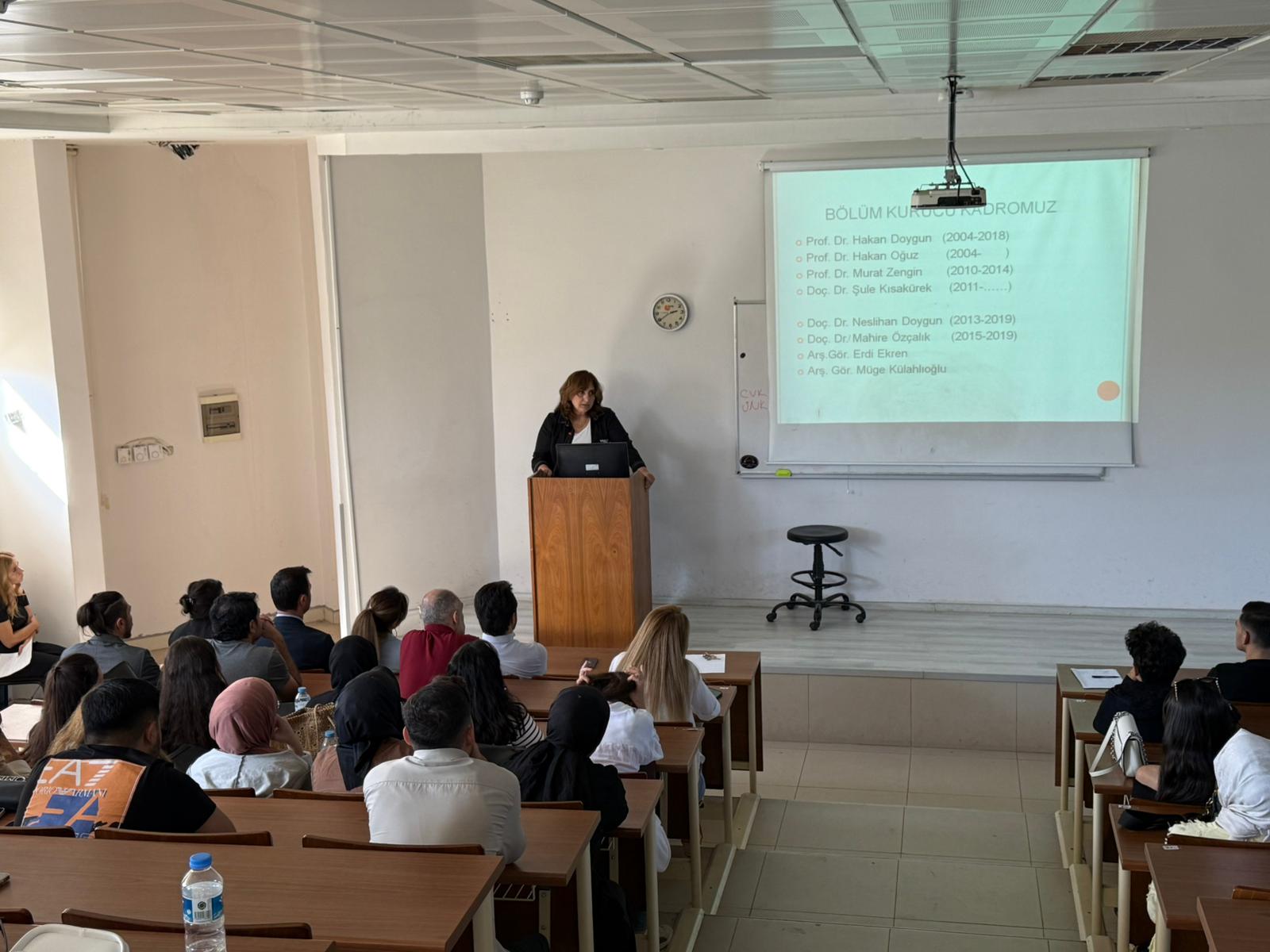 Bölümümüzün akademik yapısı, eğitim-öğretim süreçleri ve öğrencilere sunulan olanaklar hakkında bilgilendirme Bölüm Başkanımız Doç. Dr. Şule KISAKÜREK tarafından yapılmıştır.