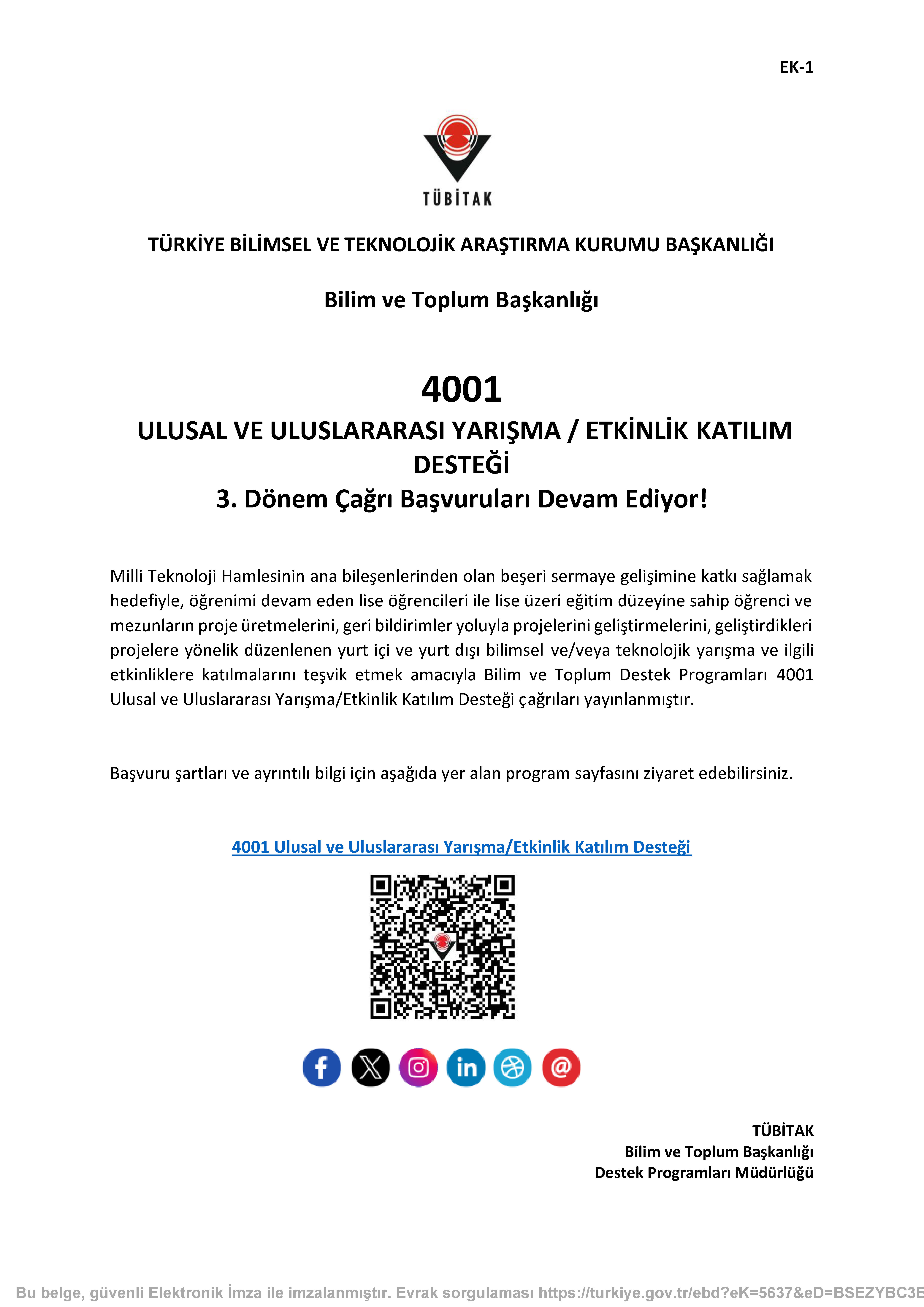 4001 Ulusal ve Uluslararası Yarışma/Etkinlik Katılım Desteği
