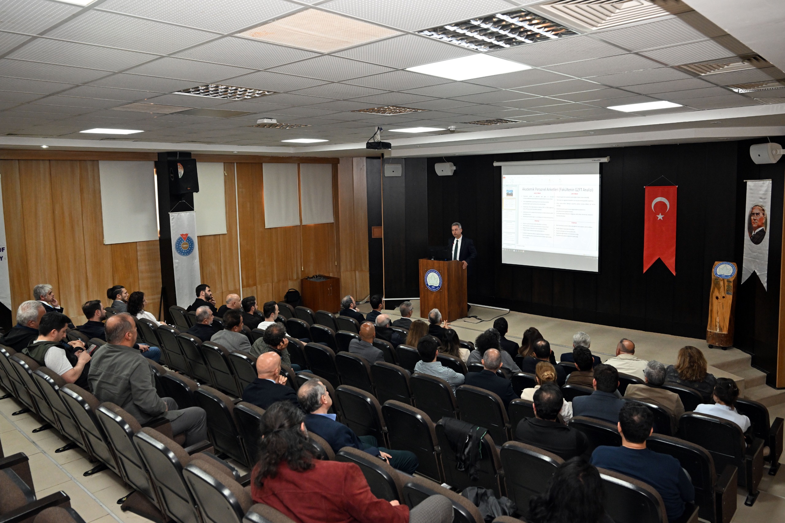 Fakültemiz tarafından düzenlenen Akademik Kurul Toplantısı, Rektörümüz Prof. Dr. İbrahim Taner Okumuş'un katılımıyla gerçekleştirildi. Fakülte yönetimi ve akademik personelin geniş katılım sağladığı toplantıda, fakültenin mevcut durumu, yürütülen çalışmalar ve gelecek hedefleri kapsamlı şekilde ele alındı.