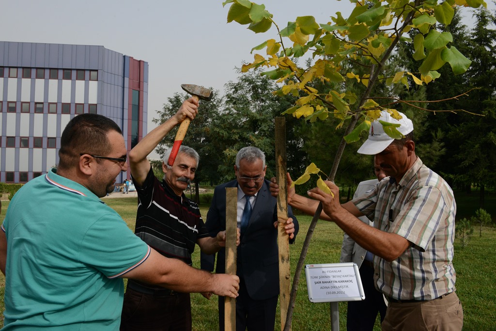 KSÜ Avşar Yerleşkesinde gerçekleştirilen ağaç dikme törenine Üniversitemiz Rektörü Prof. Dr. Durmuş Deveci, Şair Bahattin Karakoç’un oğlu Oğuz Karakoç, damadı Bülent Malkoç, üniversite yönetici ve personelinin yanı sıra bazı şiir severler de katıldı.