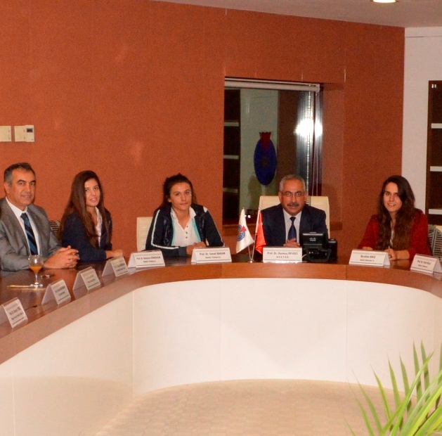 Türkiye Basketbol Federasyonu 2. Ligine yükselen Kahramanmaraş Sütçü İmam Üniversitesi (KSÜ) Spor Kulübü Bayan Basketbol Takımı, KSÜ Spor Kulübü Başkan Yardımcısı Prof. Dr. Ökkeş Alpaslan Gençay ile birlikte Üniversitemiz Rektörü Prof. Dr. Durmuş Deveci’yi ziyaret etti.
