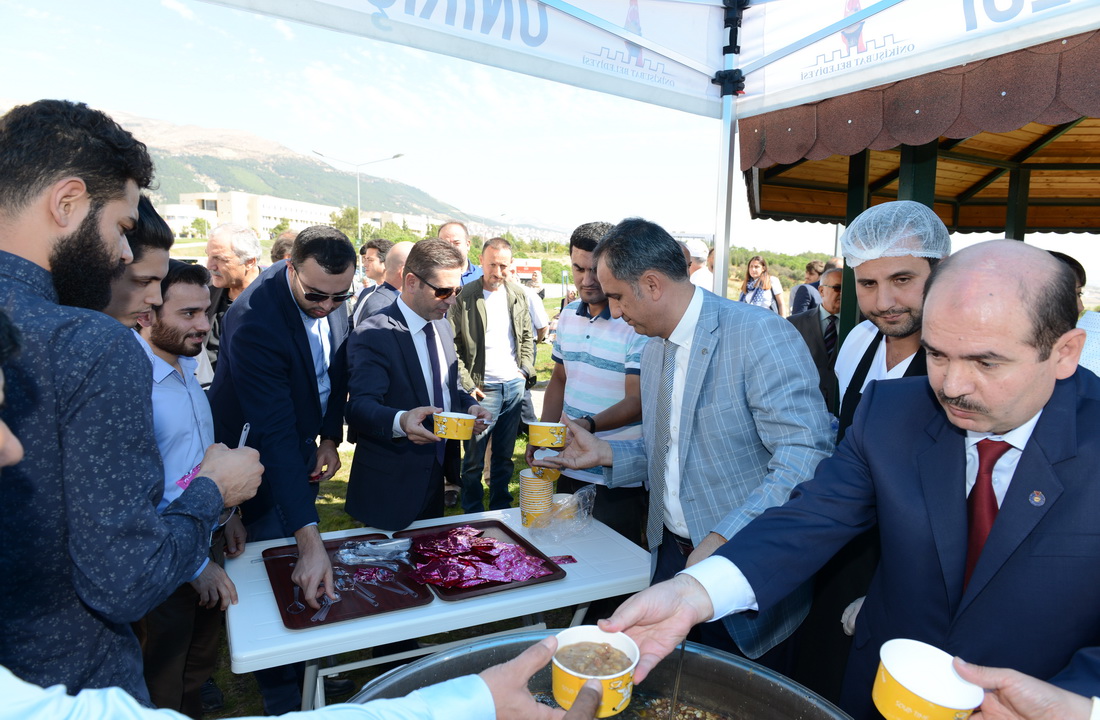Açılış konuşmaları ve İlahiyat Fakültesi Öğretim Üyesi Yrd. Doç. Dr. Mustafa Genç’in gerçekleştirdiği duanın ardından konuklara aşure ikramı yapıldı.