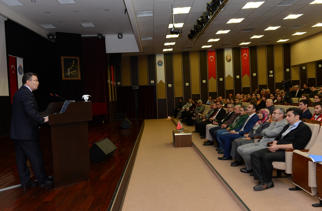 Atatürk’ün vefatının 79. yılı anısına düzenlenen konferansa Rektör Yardımcıları Prof. Dr. İbrahim Solak, fakülte dekanları, akademik ve idari personel ile öğrenciler katıldı.