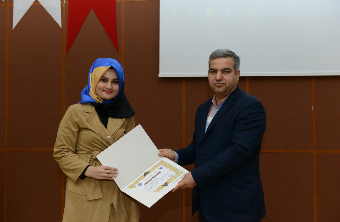 Program, konferans sunumunun ardından 2017 yılı içerisinde başarı gösteren öğrenciler ile akademik teşvik almaya hak kazanan öğretim üyelerine başarı belgelerinin protokol üyeleri tarafından takdimiyle son buldu. Akademik aşama kaydedenlere ise binişleri Rektör Prof. Dr. Durmuş Deveci tarafından giydirildi.