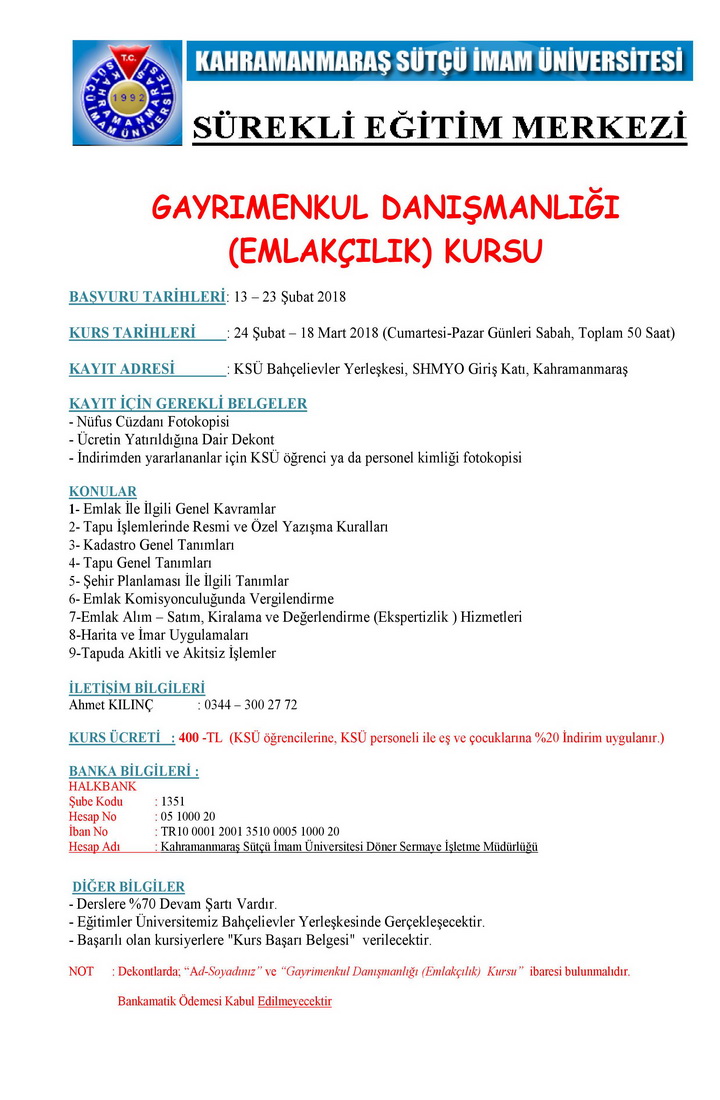 SEM: Gayrimenkul Danışmanlığı (Emlakçılık) Kursu İlanı