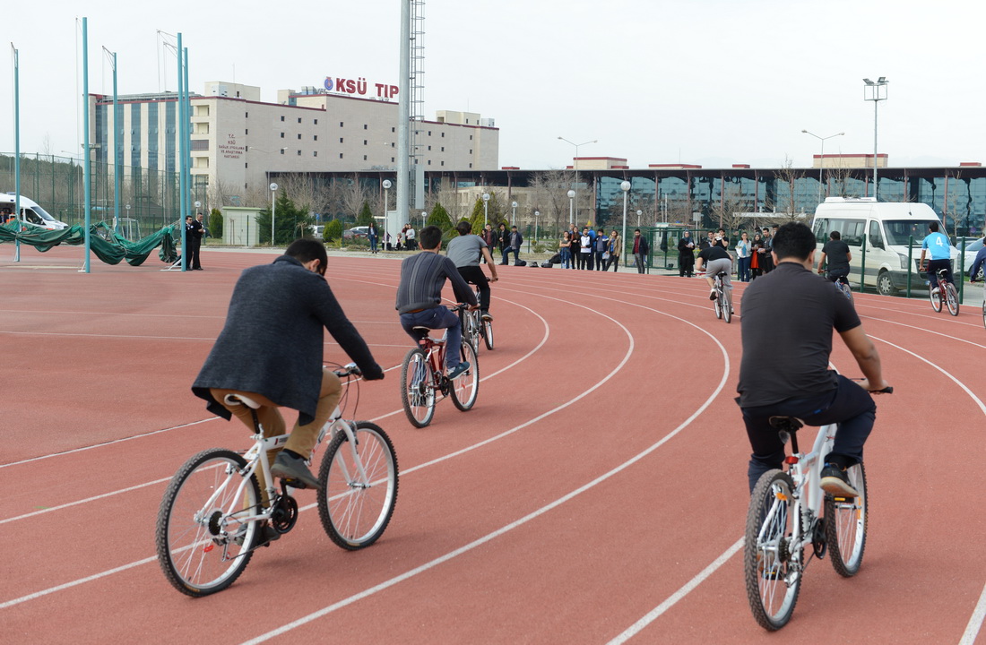 Kahramanmaraş Sütçü İmam Üniversitesi (KSÜ) Görev Bende Öğrenci Topluluğu ve Türkiye Gençlik Vakfı (TÜGVA) Kahramanmaraş Şubesi işbirliğiyle 1-7 Mart Yeşilay Haftası kapsamında bisiklet yarışı düzenlendi.