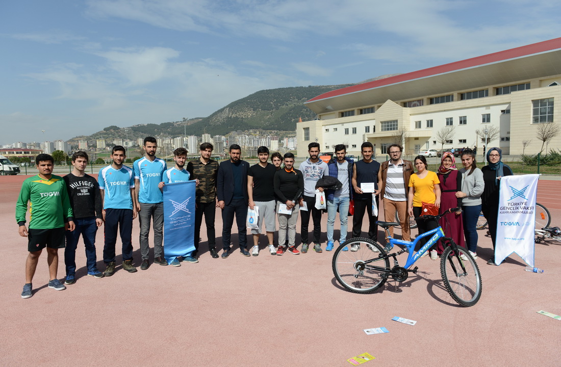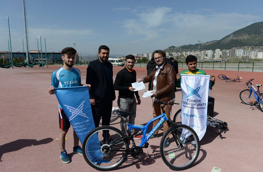 61 öğrencinin katılımıyla KSÜ Spor Kompleksinde gerçekleştirilen yarışın birincisine TÜGVA Kahramanmaraş Şubesi tarafından bisiklet hediye edildi. Yarışmayı birinci olarak tamamlayan KSÜ Sosyal Bilimler Meslek Yüksekokulu Büro Yönetimi Bölümü öğrencisi Ahmet Sinan Tanır’a ödülü TÜGVA Kahramanmaraş Şubesi Yükseköğretim Koordinatörü Enes Dölek tarafından verildi. Bisikletten düşen arkadaşına yardım etmek için yarışmadan çekilen Hikmet Çoban’a ise fair play ödülü verildi.