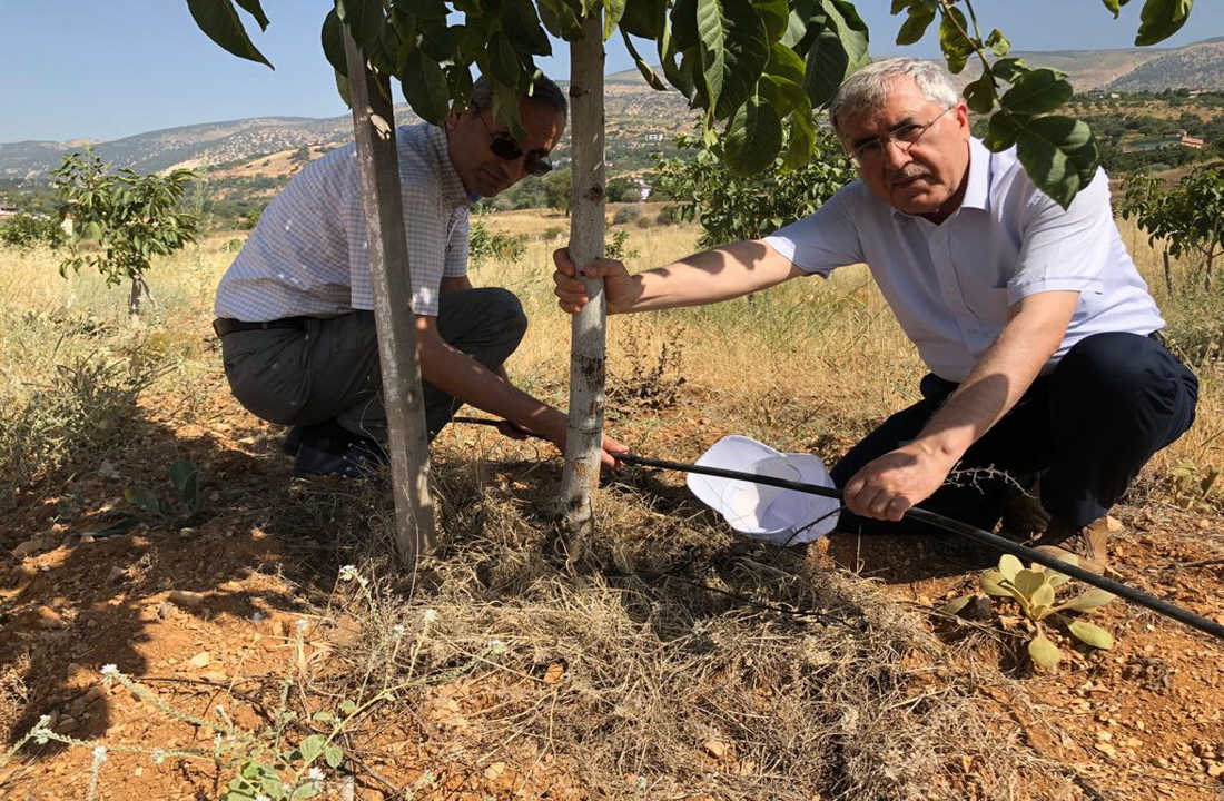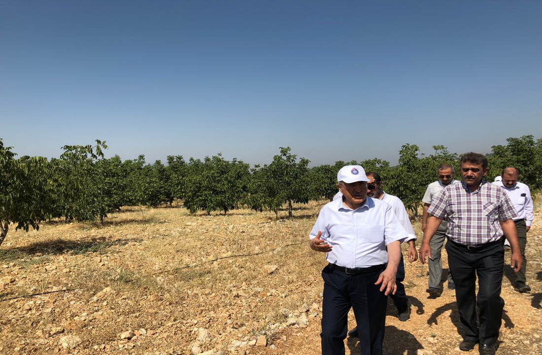 Rektör Can, inceleme gezisi kapsamında son olarak Gaffarlı Ağyar Mahallesinde bulunan üniversitemize ait araziyi gezdi. KSÜ Ziraat Fakültesi tarafından kullanılan arazide yürütülen çalışmaları yerinde inceleyen Rektör Can, bu çalışmalara ilişkin Ziraat Fakültesi Dekanı Prof. Dr. Cafer Gençoğlan’dan bilgi aldı.