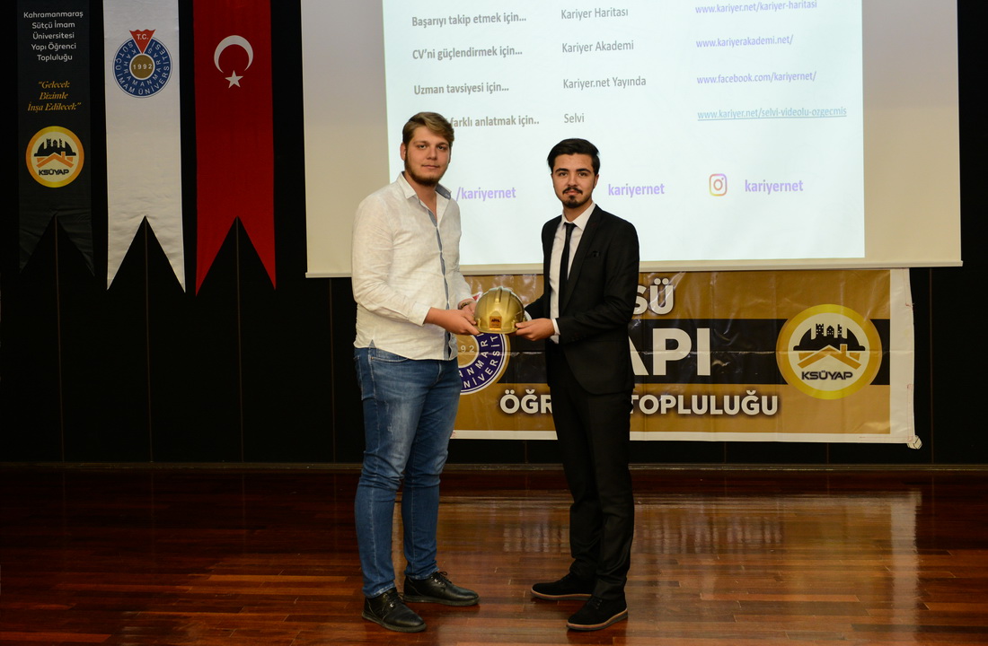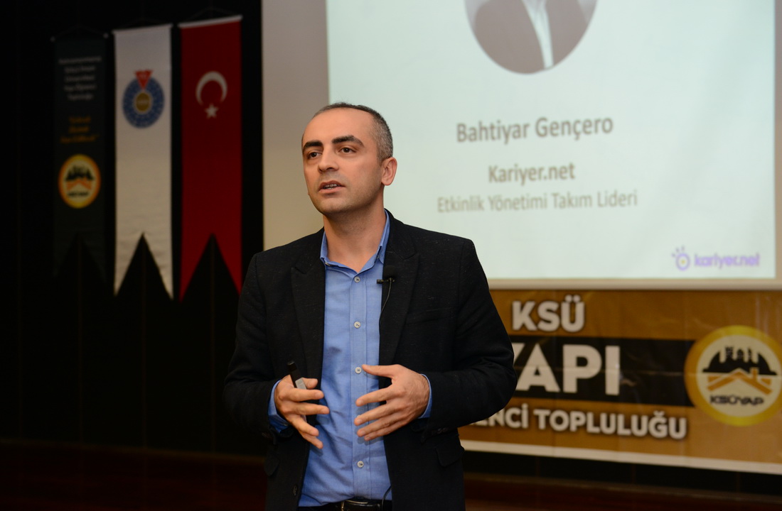 KSÜ Cahit Zarifoğlu Konferans Salonunda Gerçekleştirilen programa konuşmacı olarak Kariyer.net Etkinlik Yönetimi Takım Lideri Bahtiyar Gençero katıldı. Gençero katılımcılara özgeçmiş hazırlama, ön plana çıkma, kendini tanıma ve en iyi şekilde ifade etme, mülakat teknikleri konularında bilgiler verdi.