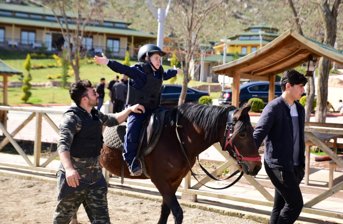 Türkoğlu Belediye Başkanı Osman Okumuş ise “Kahramanmaraş Sütçü İmam Üniversitesi Rektörlüğü ve Türkoğlu Belediyemizin organize ettiği, inşallah bundan sonra da terapi sürecinin devam edeceği bir ortamdayız. Burası 25 dönümlük alana kurulu Atlı ve Okçuluk Eğitim Tesisleri, biliyorsunuz geçen yıl ikincisini düzenlediğimiz Dünya Uluslararası Avasım Türk Oyunları Festivaline ev sahipliği yapmıştık. Burada ata binicilik, gökbörü, cirit ve ata sporumuz olan okçulukla ilgili eğitimler veriyoruz. Tabi Kahramanmaraş’ta ki Down sendromu Derneğinin talebi üzerine 100 tane çocuk Pazartesi ve Çarşamba günleri 50’şer kişi olmak üzere bir ay süresince burada terapi eğitimi alacak. Böyle bir etkinliğe ev sahipliği yaptığımızdan dolayı gurur duyuyoruz. Çocuklarımızın, derneğimizin her zaman yanındayız. ”dedi.