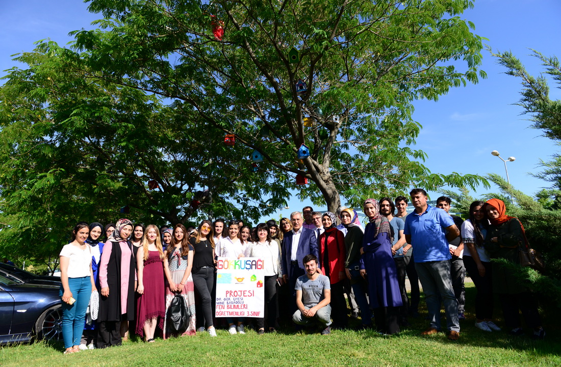 Eğitim Fakültesi Dr. Öğretim Üyesi Mine Babaoğlu koordinatörlüğünde yürütülen ‘Gök-kuş-ağı Projesi’ kapsamında öğrenciler tarafından hazırlanan kuş evleri üniversitemiz Rektörü Prof. Dr. Niyazi Can, Eğitim Fakültesi Dekanı Prof. Dr. Nail Yıldırım, akademisyen, personel ve öğrencilerin katılımıyla Eğitim Fakültesi çevresindeki ağaçlara yerleştirildi.