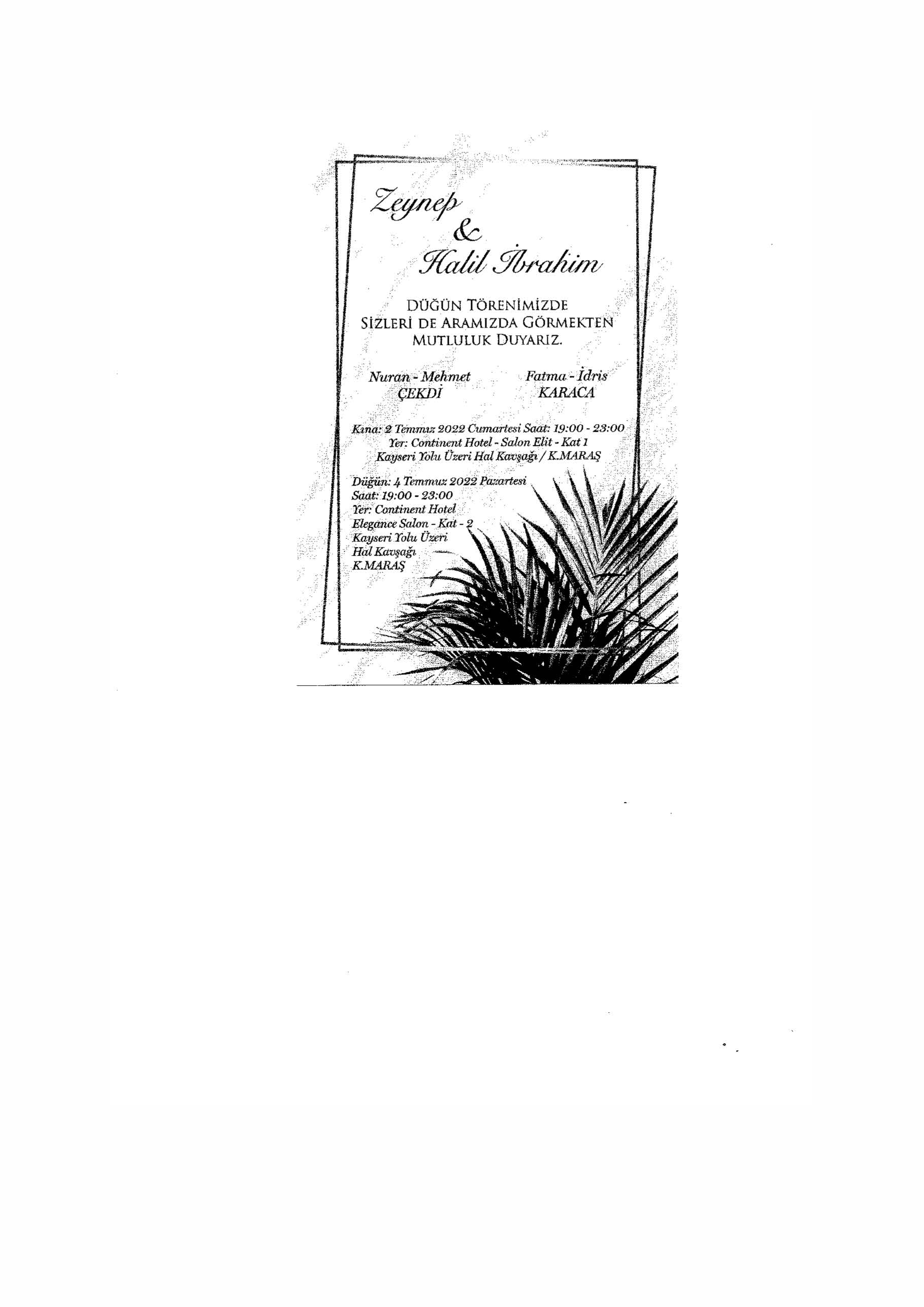 Üniversitemiz Teknik Bilimler Meslek Yüksekokulu personeli Mehmet ÇEKDİ’nin kızı 4 Temmuz 2022 Pazartesi Günü Saat: 19.00-23.00 arası Continent Hotel Elegance Salonunda (Kayseri yolu üzeri hal kavşağı) düzenlenecek törenle dünya evine girecektir. Genç çifti tebrik eder, mutluluklar dileriz.