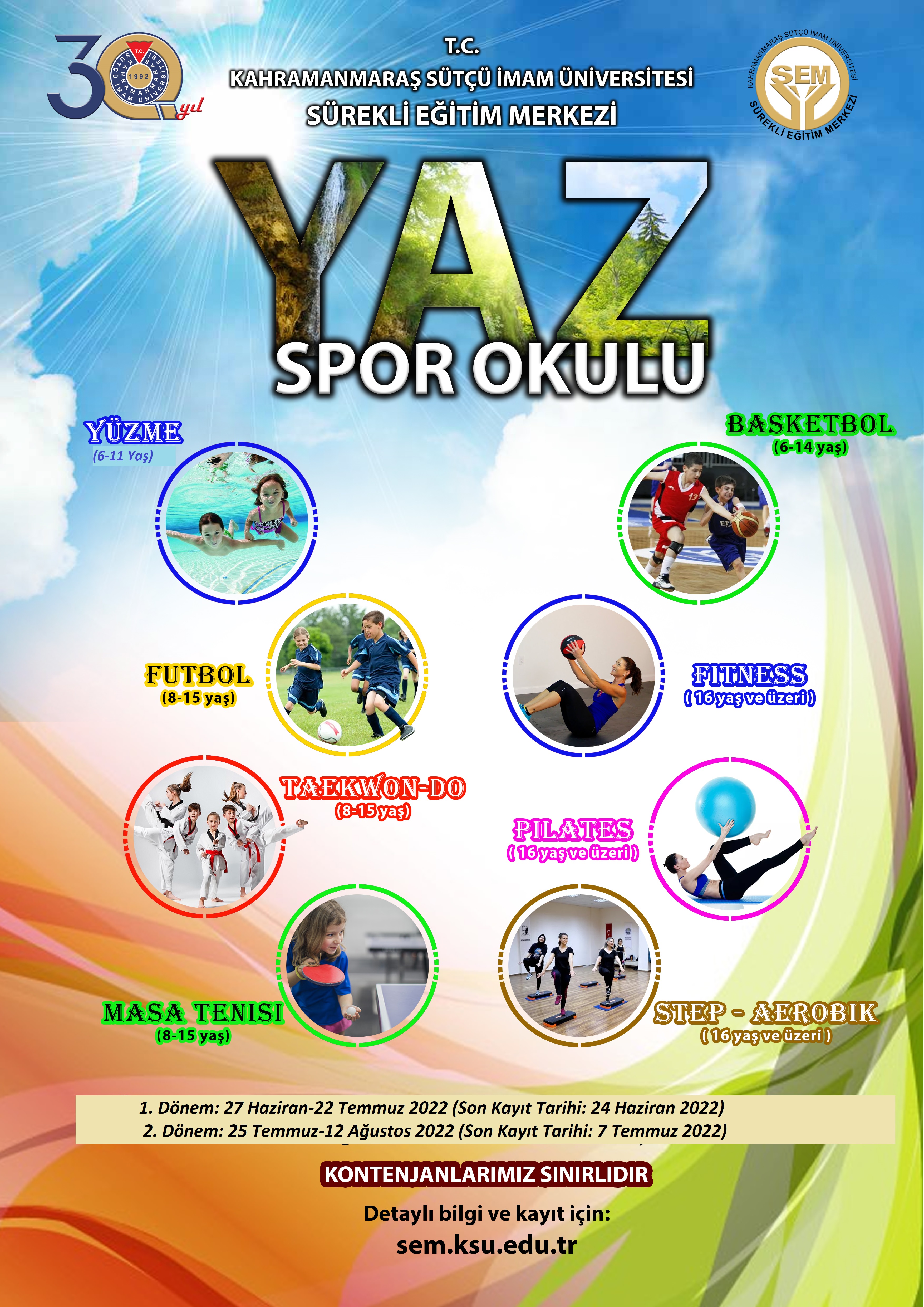 KSÜ SÜREKLİ EĞİTİM MERKEZİ YAZ SPOR OKULU KURSLARI DETAYLI BİLGİ İÇİN TIKLAYINIZ