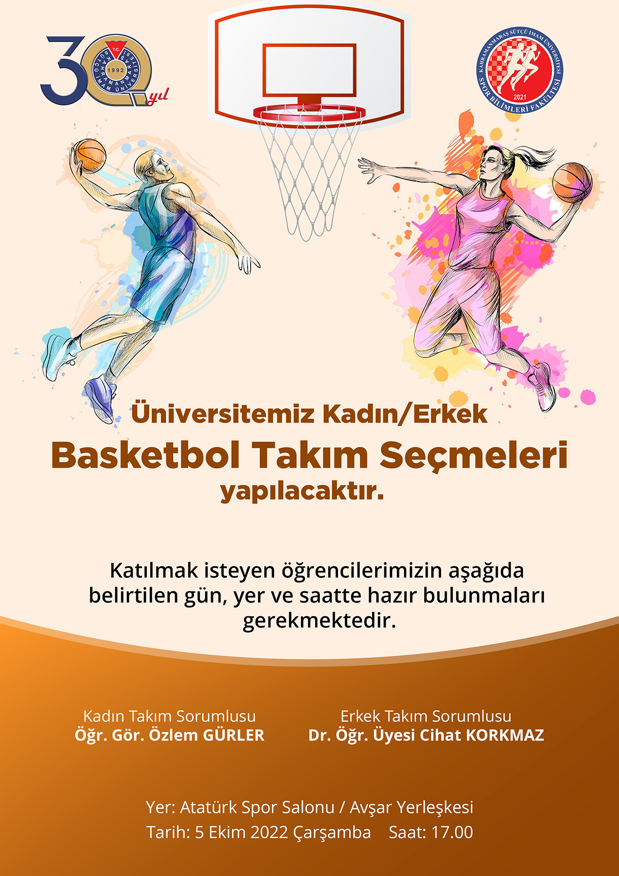 Üniversitemiz Kadın-Erkek Basketbol Takım Seçmeleri Yapılacaktır
