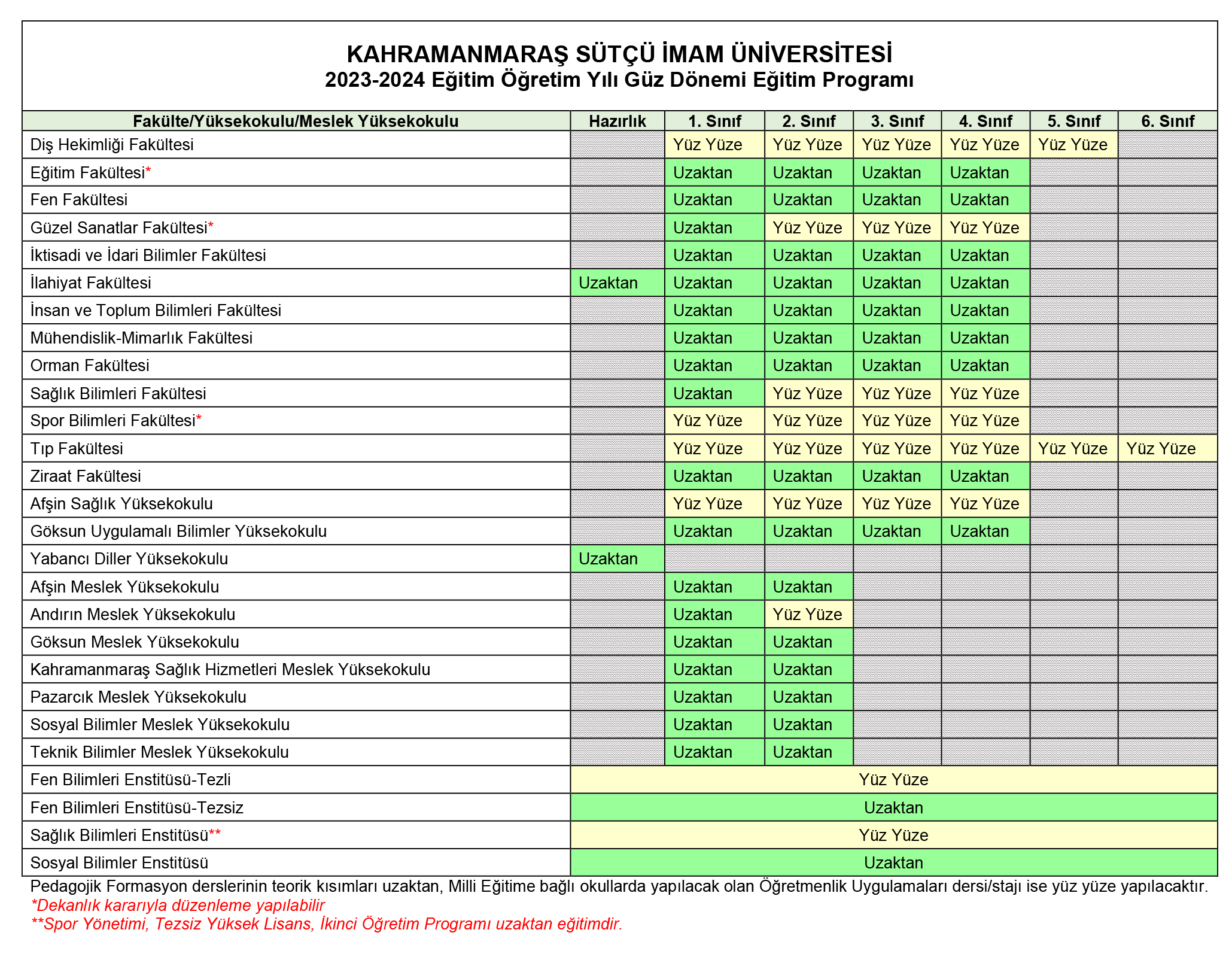 2023-2024 Akademik Yılı Güz Döneminde Eğitim-Öğretimin Uygulanmasıyla İlgili KSÜ Senatosunun Yeni Kararı