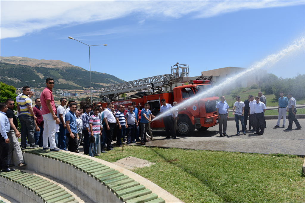 Seminer sonunda Özel Güvenlik personelinin katılımıyla KSÜ Sivil Savunma Birimi tarafından organize edilen yangın tatbikatı yapıldı.