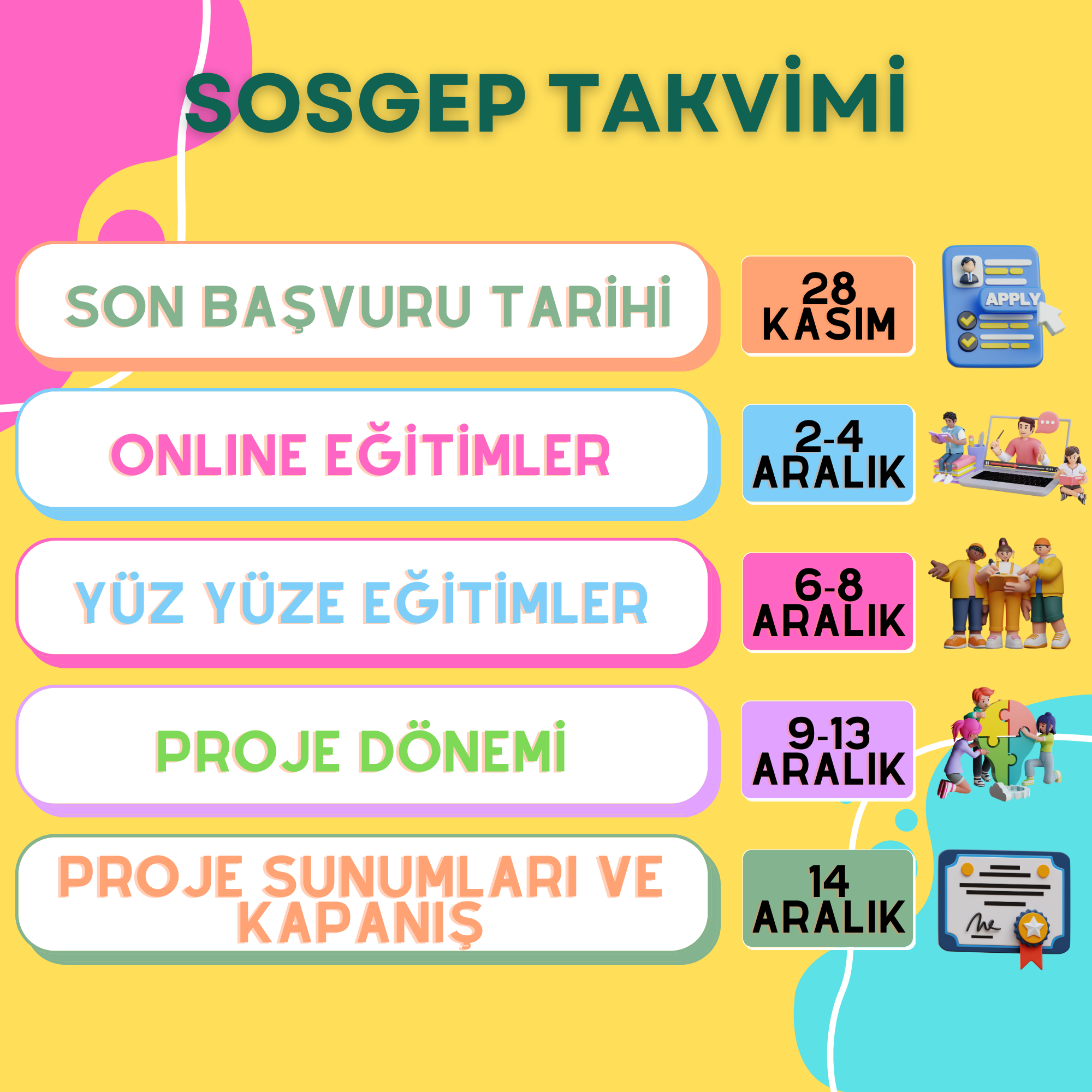 Eğitim ve proje takvimi detayları görsellerde!