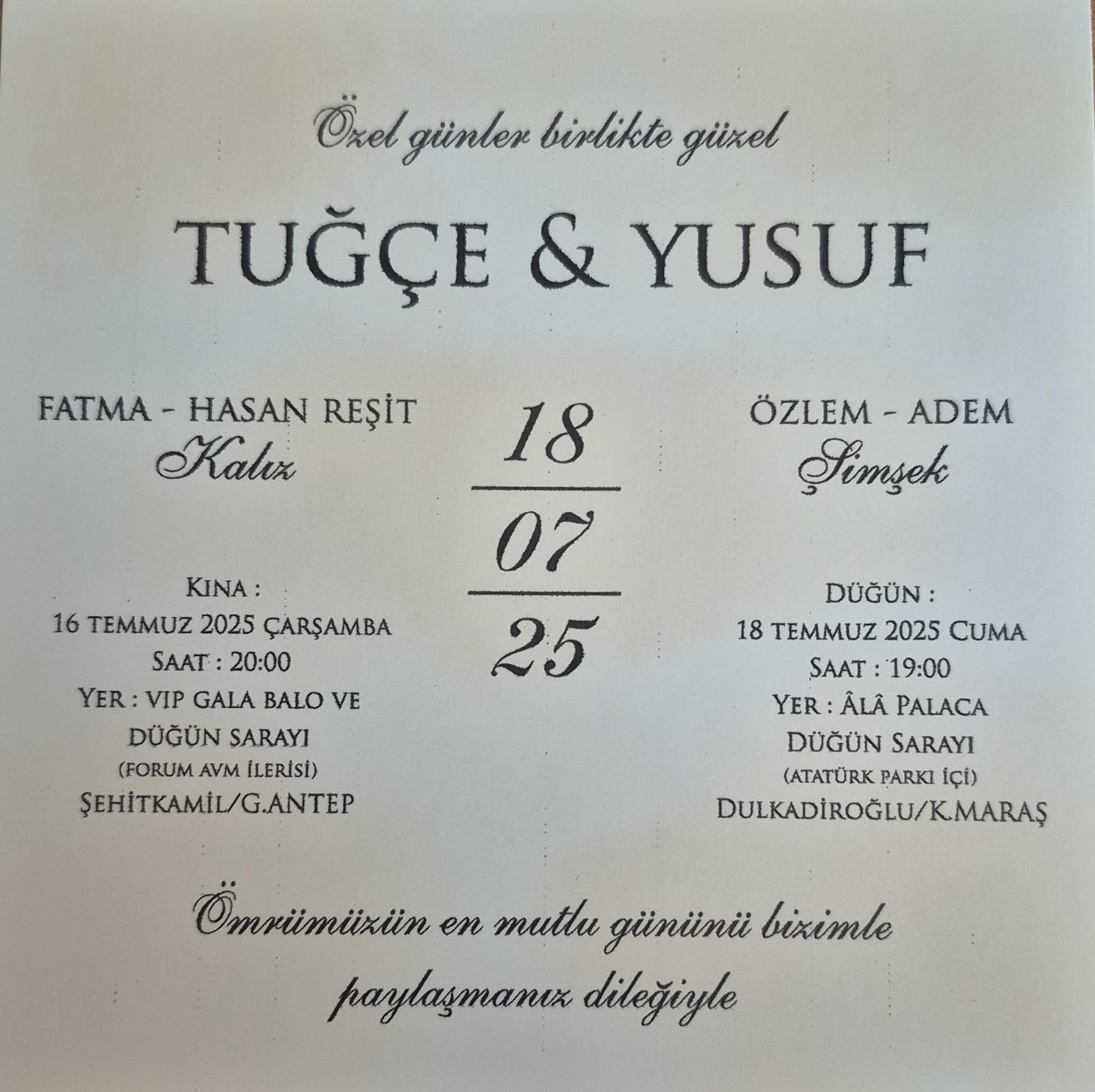 Üniversitemiz Kütüphane ve Dökümantasyon Daire Başkanlığı personeli Yusuf Şimşek'in 18 Temmuz 2025 Cuma Günü Saat: 19.00'da Âlâ Palaca Düğün Sarayı'nda kendi düğünü olacaktır. Şimşek Ailesini ve genç çifti tebrik eder, mutluluklar dileriz.